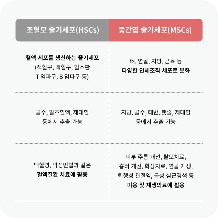 기존의 줄기세포 시술에는 혈액 생성에 관여하는 조혈모 줄기세포(HSCs)가 주로 활용되었으나 재생 효능 및 줄기세포 함량 등이 더욱 뛰어난 중간엽 줄기세포(MSCs)로의 세대교체가 예상됩니다.