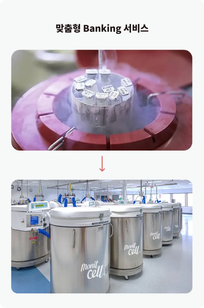 모닛셀은 흡입 지방에서 추출한 줄기세포를 엄격한 품질 관리 시스템을 통해 안전하게 보관하는 줄기세포 뱅킹 시스템을 구축했습니다. 모닛셀의 줄기세포 뱅킹을 이용하면 한 번의 줄기세포 채취로 고객이 원하는 때에 다회 시술을 하는 데에 활용할 수 있습니다.